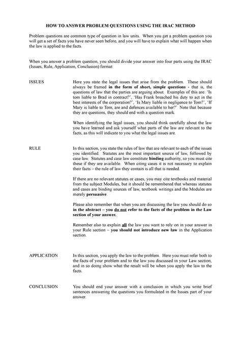 [UniqueID] - Read PROBLEM QUESTION IRAC SAMPLE ANSWER PDF